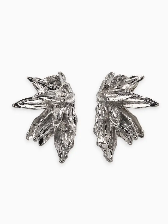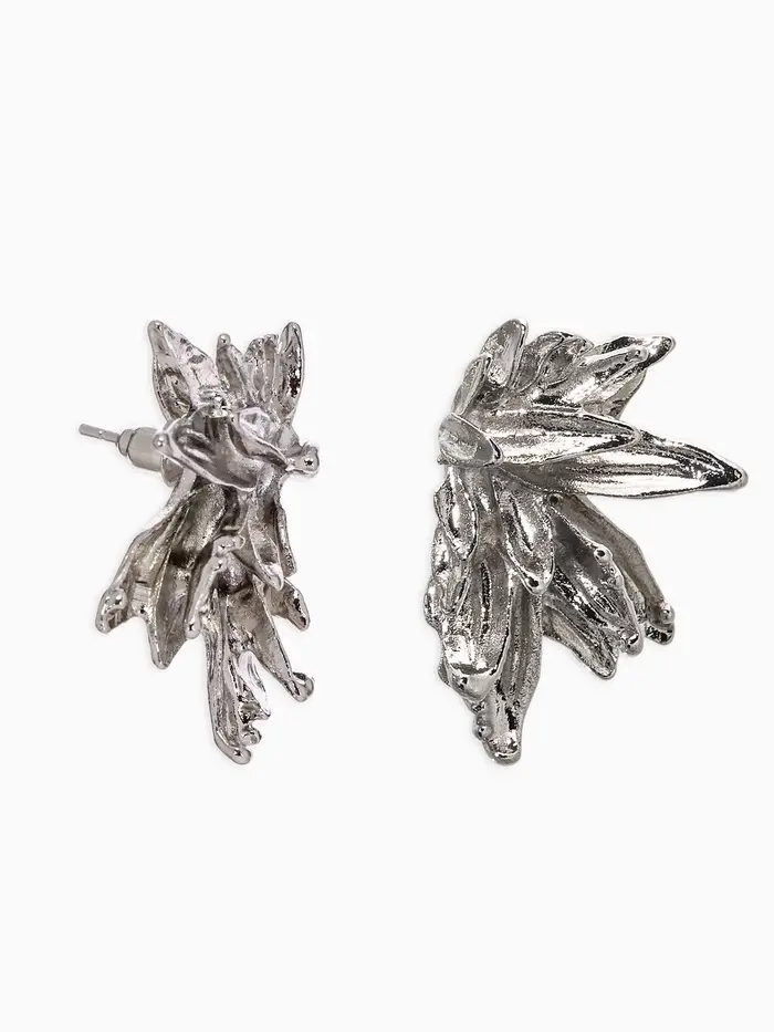 Серьги металл "Цветы половинки", цвет серебро