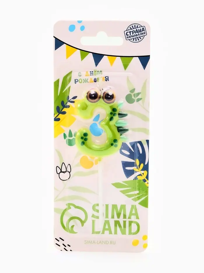 Свеча для торта цифра 3 «Зверюшка», 5 см