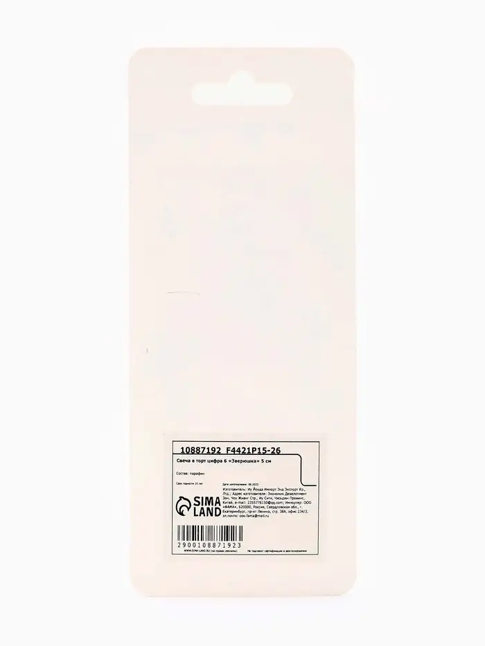 Свеча для торта цифра 6 «Зверюшка», 5 см