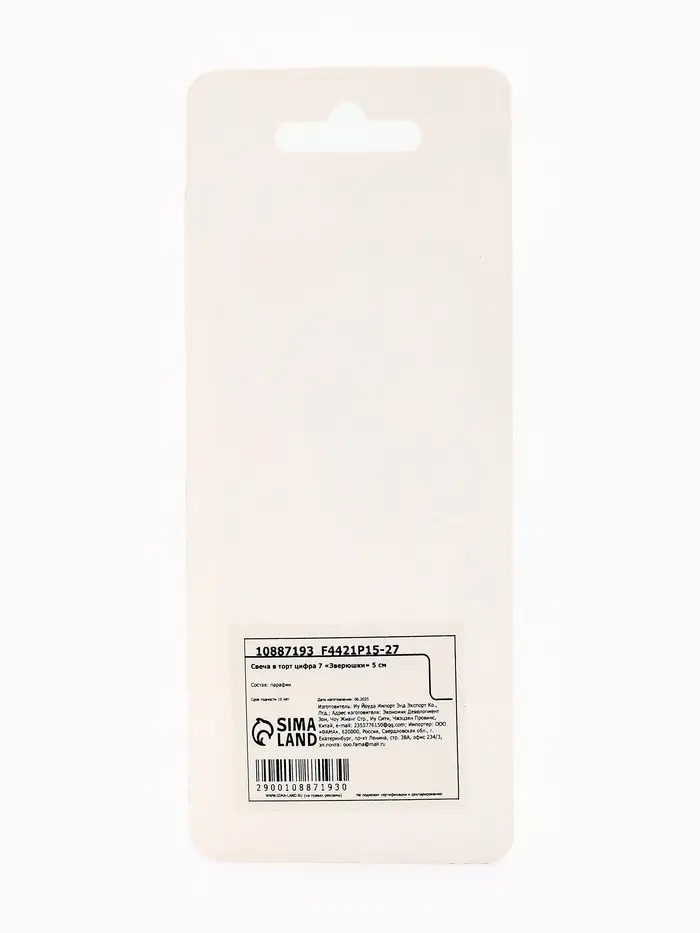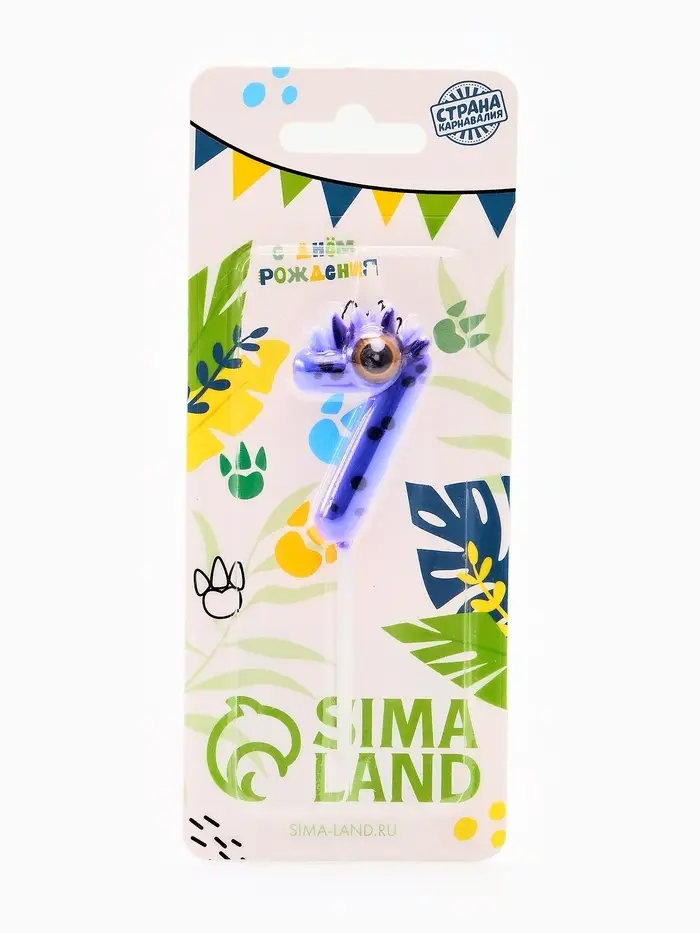 Свеча для торта цифра 7 «Зверюшки», 5 см