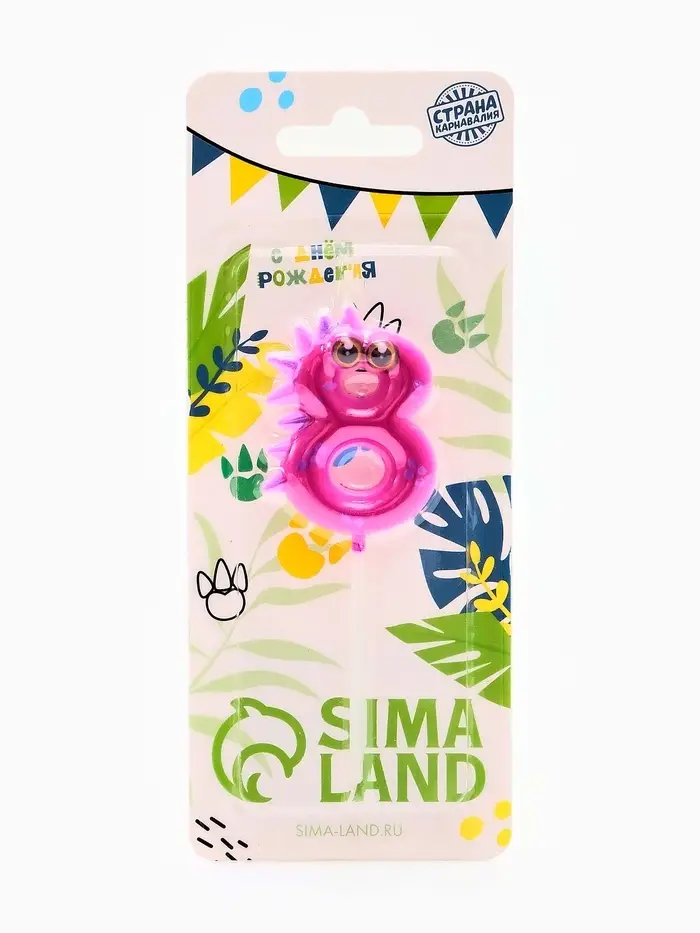Свеча для торта цифра 8 «Зверюшки», 5 см