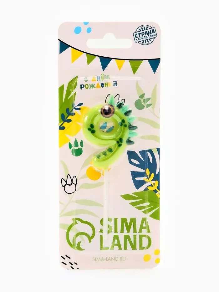 Свеча для торта цифра 9 «Зверюшки», 5 см