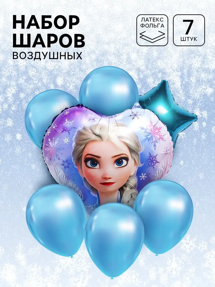 Шары воздушные набор, 7 шт., фольга, латекс, голубой, Снежная принцесса
