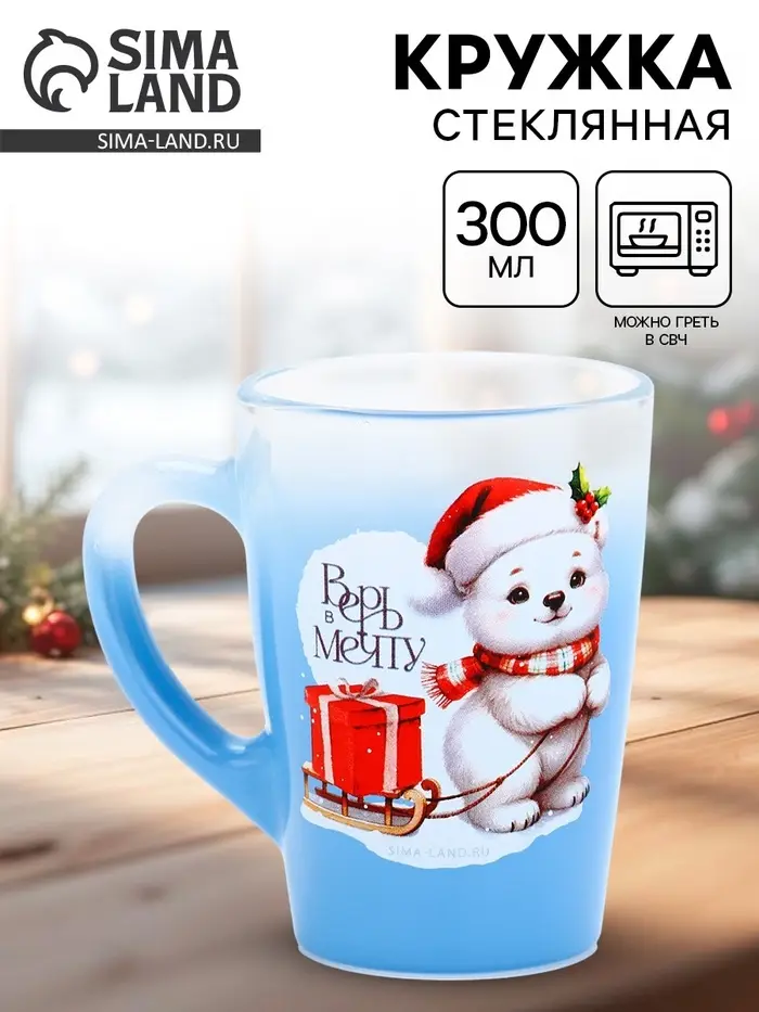 Кружка стеклянная новогодняя «Верь в мечту», 300 мл