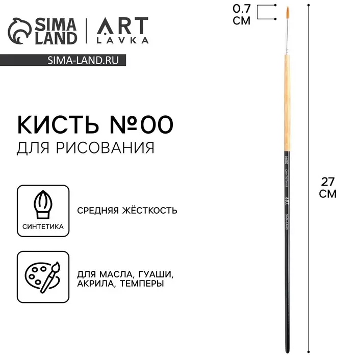Кисть для рисования Синтетика круглая №00 (диаметр обоймы 2 мм; длина ворса 10 мм)