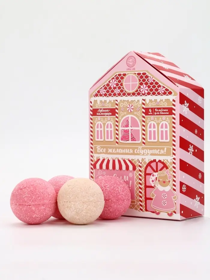 Адвент-календарь "Все желания сбудутся", бомбочки для ванны, 4х120