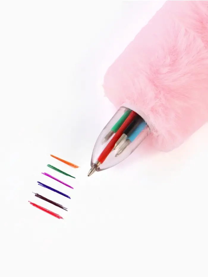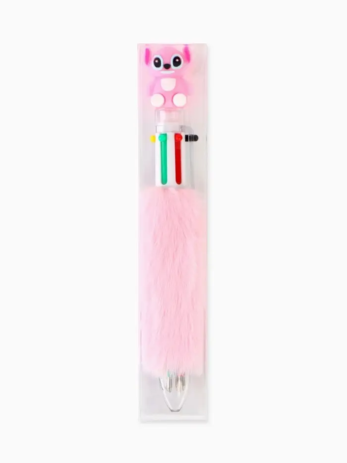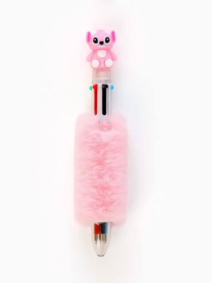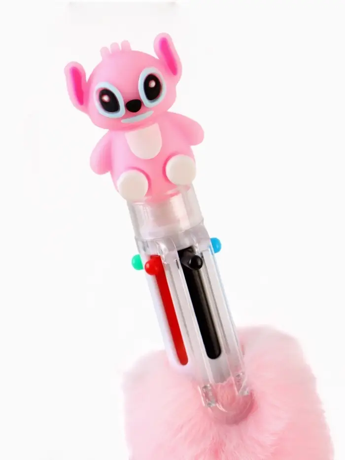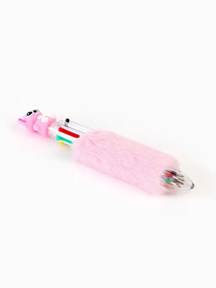 Ручка многоцветная 6 цветов пушистая Стич , розовая