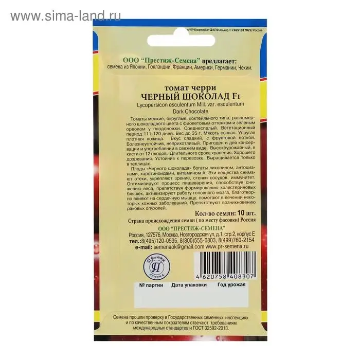Семена Томат "Черный шоколад" F1, среднеспелый, 10 шт