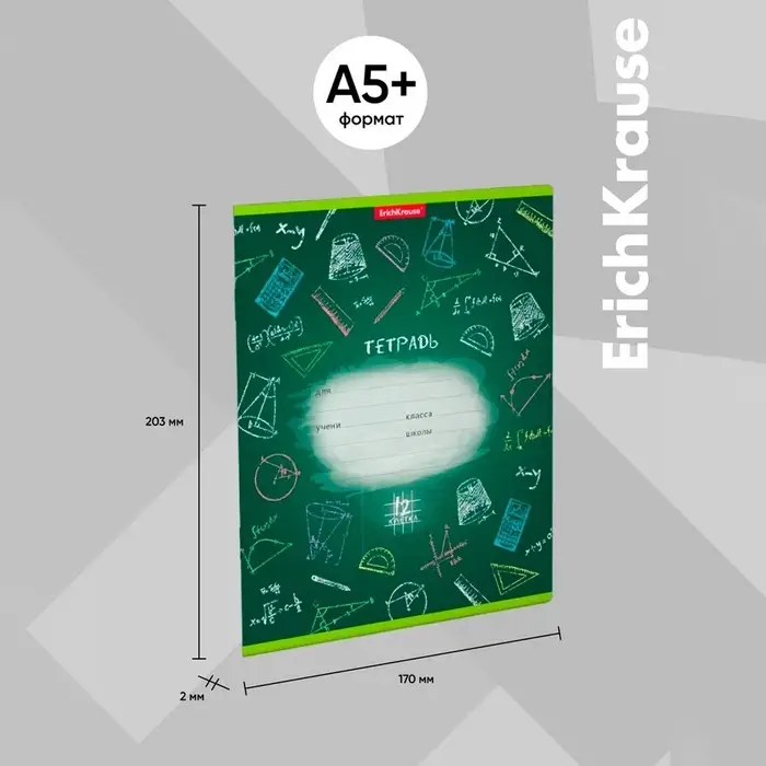 Тетрадь школьная ученическая формата А5+ (170х203 мм). Обложка из высококачественного мелованного картона плотностью 180 г/м2. В блоке 12 листов в клетку с полями. Бумага офсетная плотностью 60 г/м2. Цвет линовки - синий. Скругленные уголки обложки и блока. Тип скрепления - скоба. Тетради упакованы в термоусадочную пленку по 10 штук