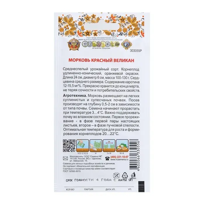 Семена Морковь "Красный великан", серия Русский огород, 2 г
