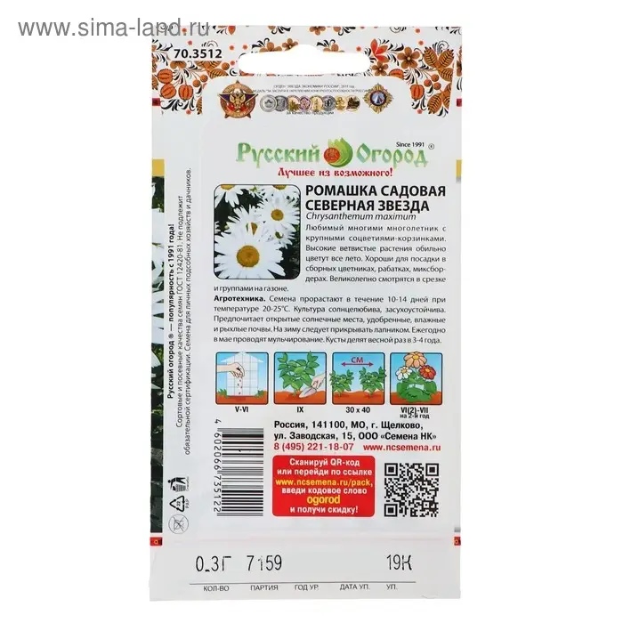 Семена цветов Ромашка "Северная звезда", 0,3 г