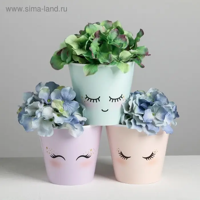 Набор кашпо для цветов 3 в 1 «Милые глазки», 0,8 л, 11 х 12 см
