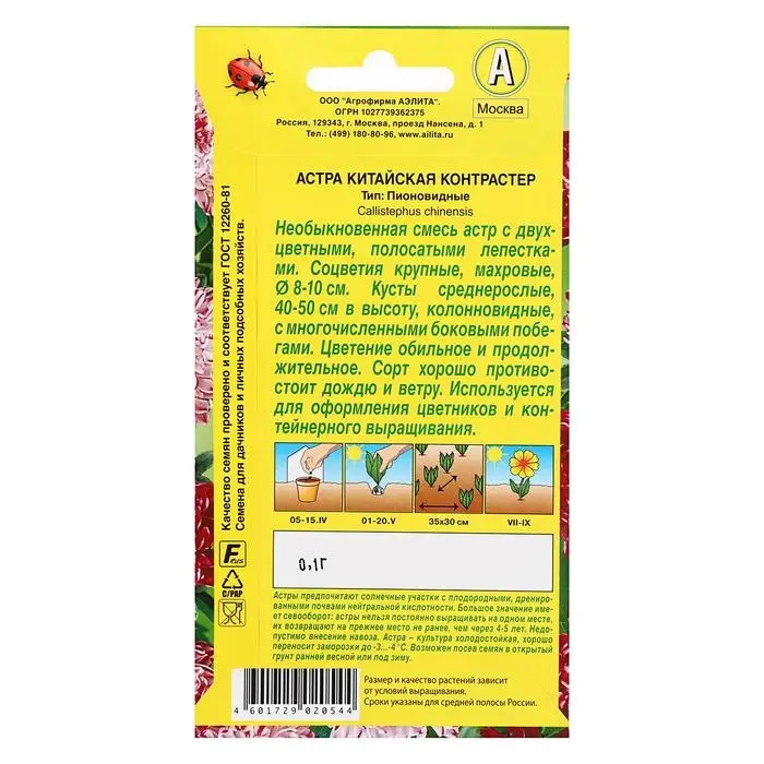 Семена цветов Астра Бьютифул Дэй Твайлайт Шейдес, 0,1гр