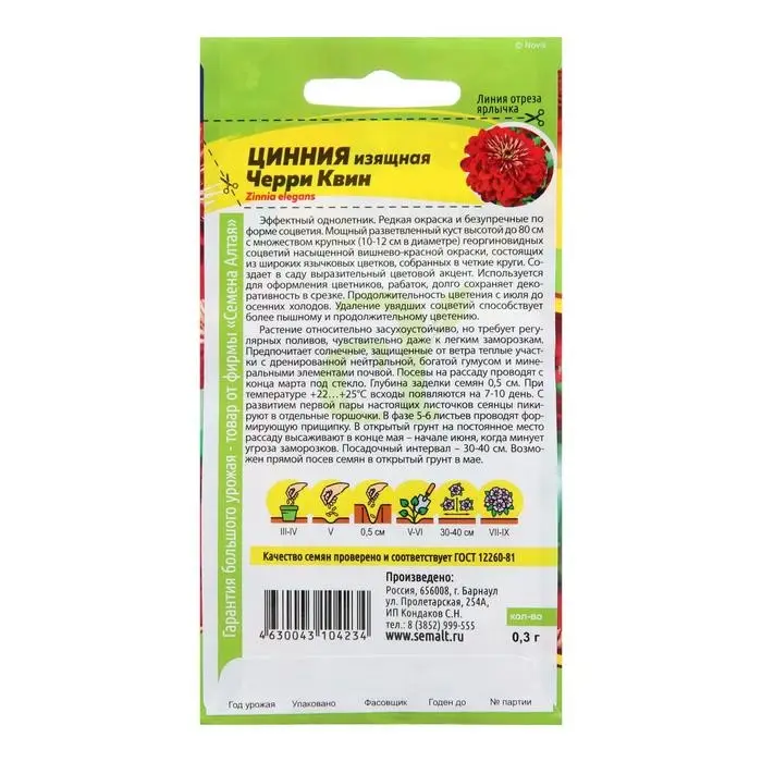 Семена цветов Цинния "Черри Квин", георгиноцветковая, Сем. Алт, ц/п, 0,3 г