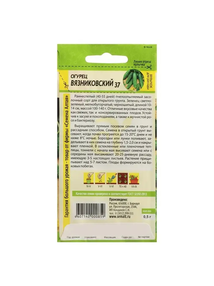 Семена Огурец "Вязниковский 37", Сем. Алт, ц/п, 0,5 г