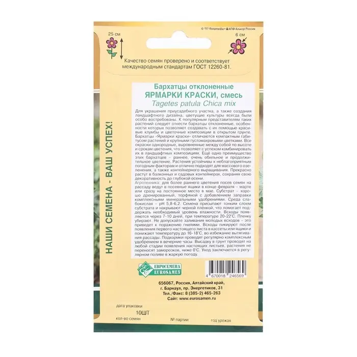 Семена цветов Бархатцы "Тайшан", смесь, Сем. Алт, ц/п, 5 шт
