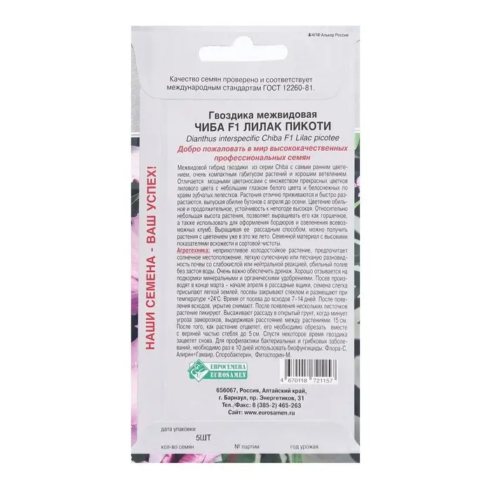 Семена цветов гвоздика межвидовая чиба «Лилак Пикоти», 5 шт.