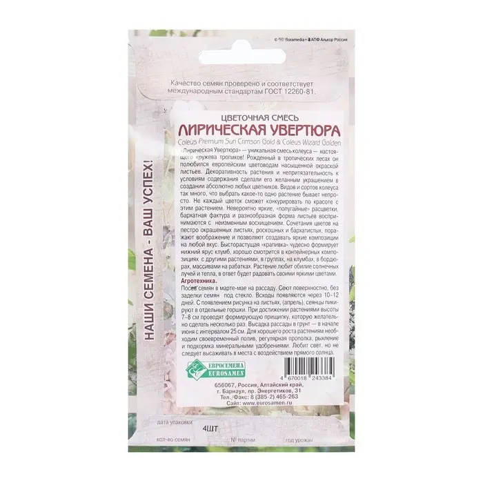«Лирическая Увертюра» - уникальная смесь колеуса- настоящего кружева тропиков! Рожденный в тропических лесах он полюбился европейским цветоводам насыщенной окраской листьев.
