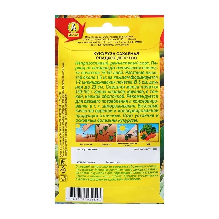 Семена Кукуруза сахарная Сладкое детство Ц/П 7г