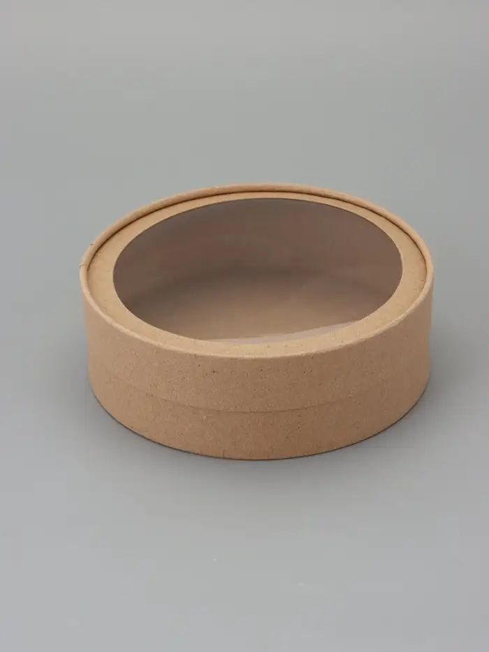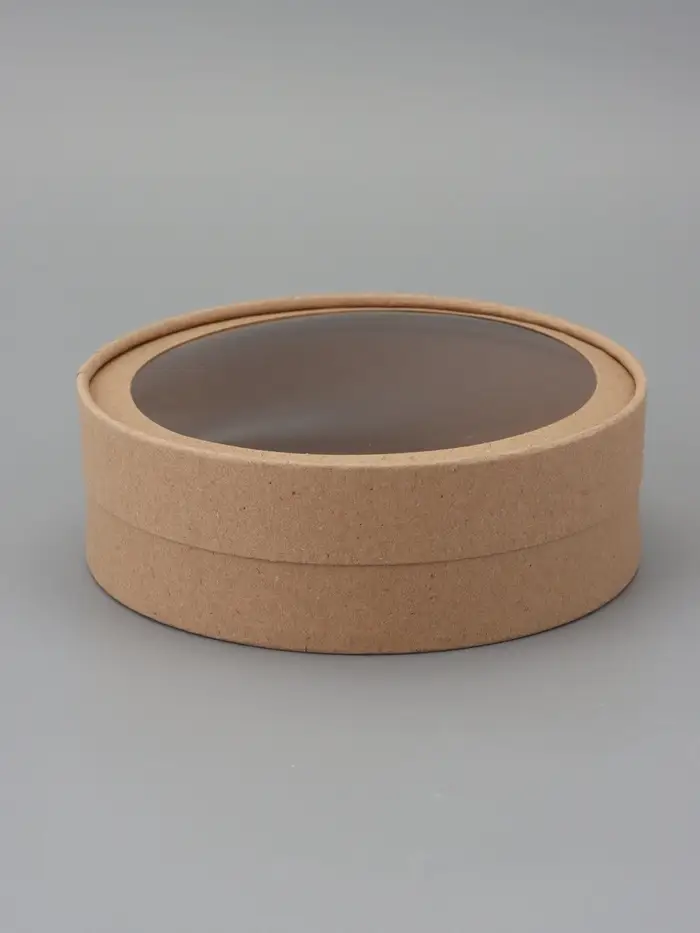 Коробка круглая подарочная завальцованная с окном, крафт, 18×6 см