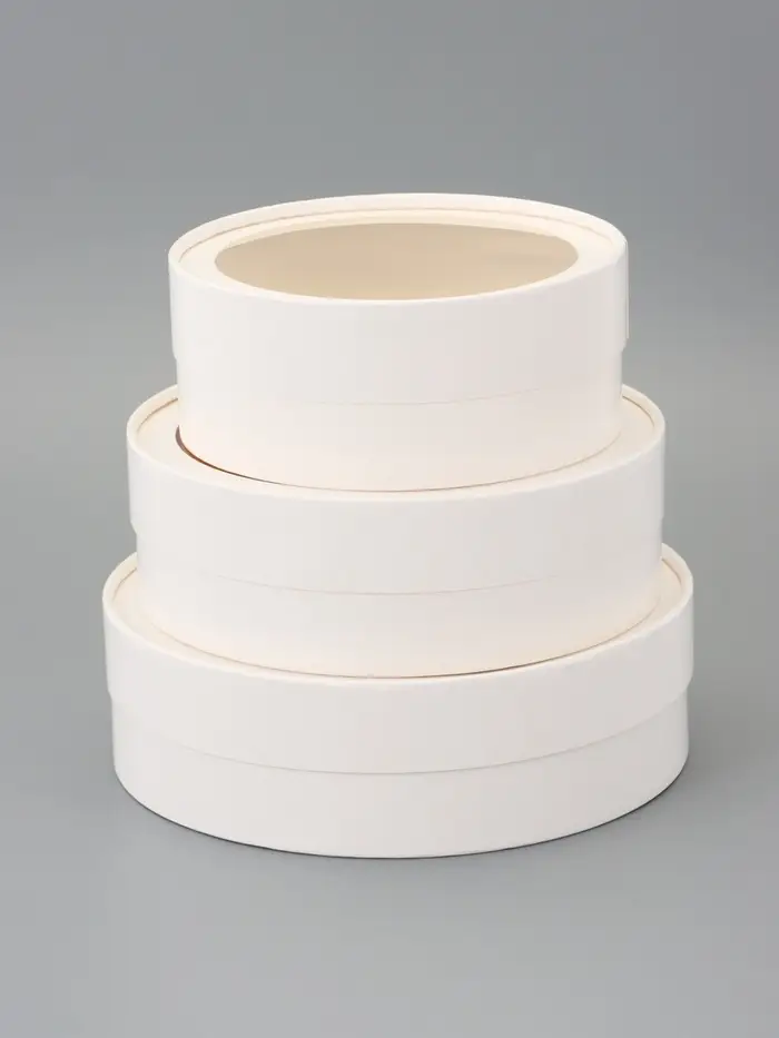Набор подарочных коробок 3 в 1 круглые с окном, завальцованные, белые, 20×18×15 см