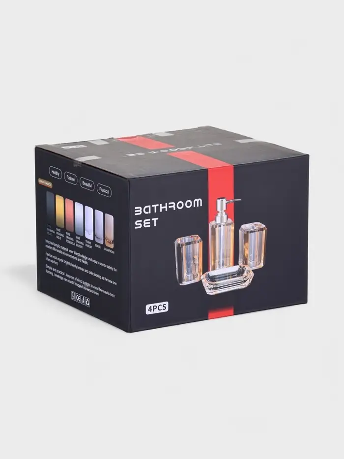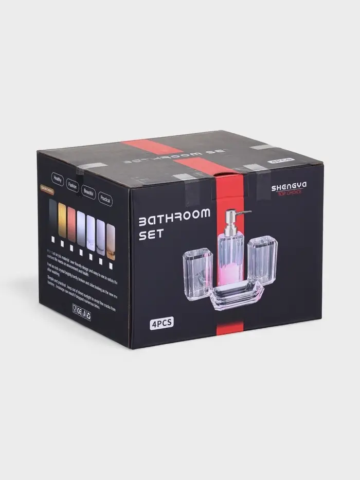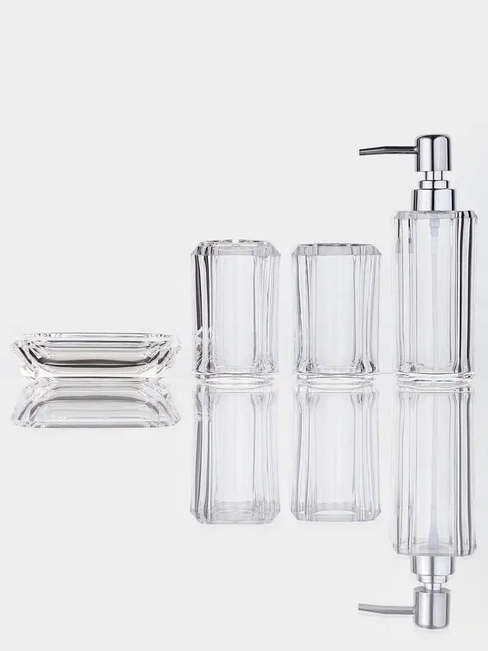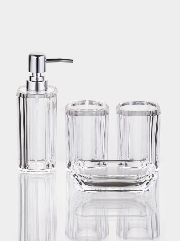 Набор для ванной "Кристалл" 4 предмета (дозатор, 2 стакана, мыльница)