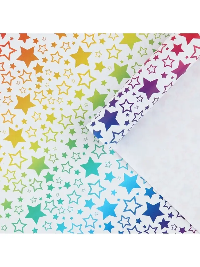 Бумага упаковочная глянцевая «Радужные звезды», 70 х 100 см