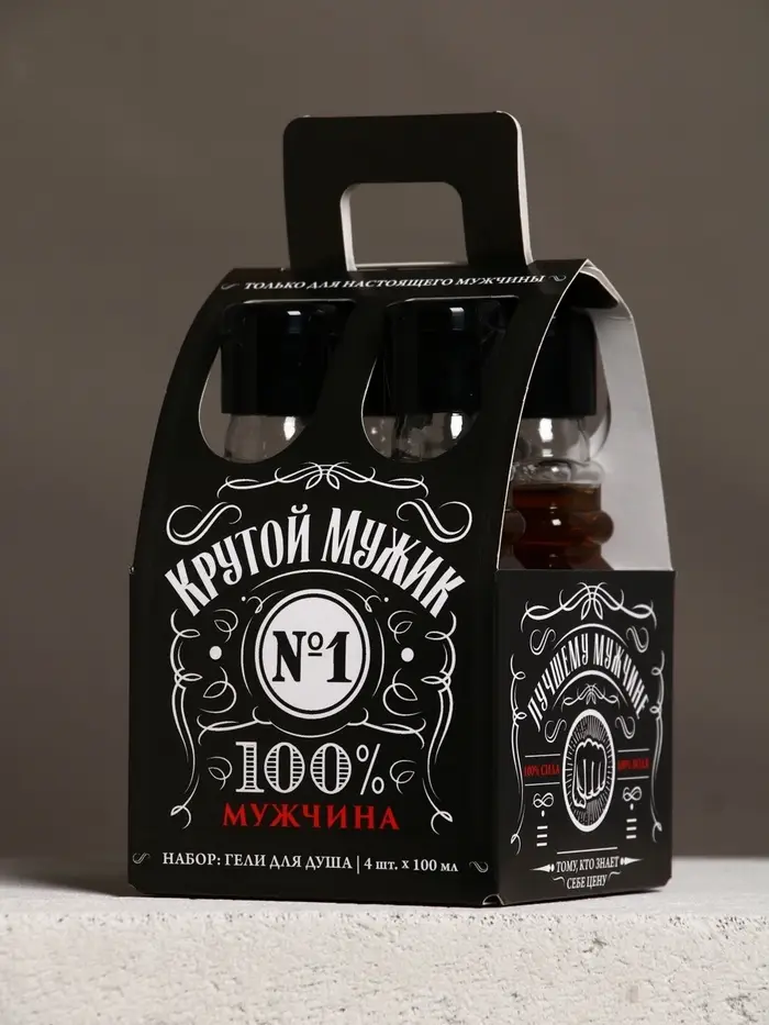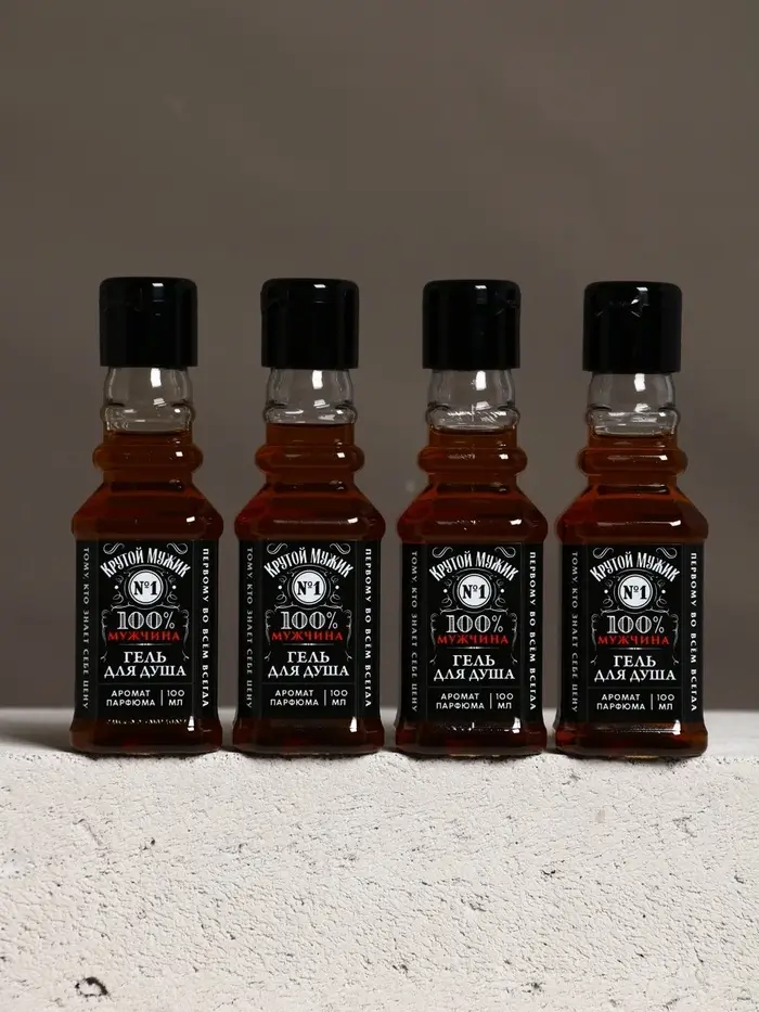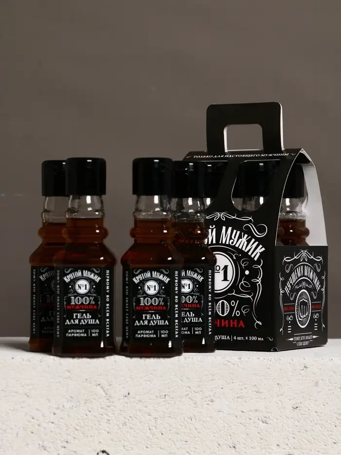 Набор мини виски гелей для душа "Крутой мужик" в паке, 4х100