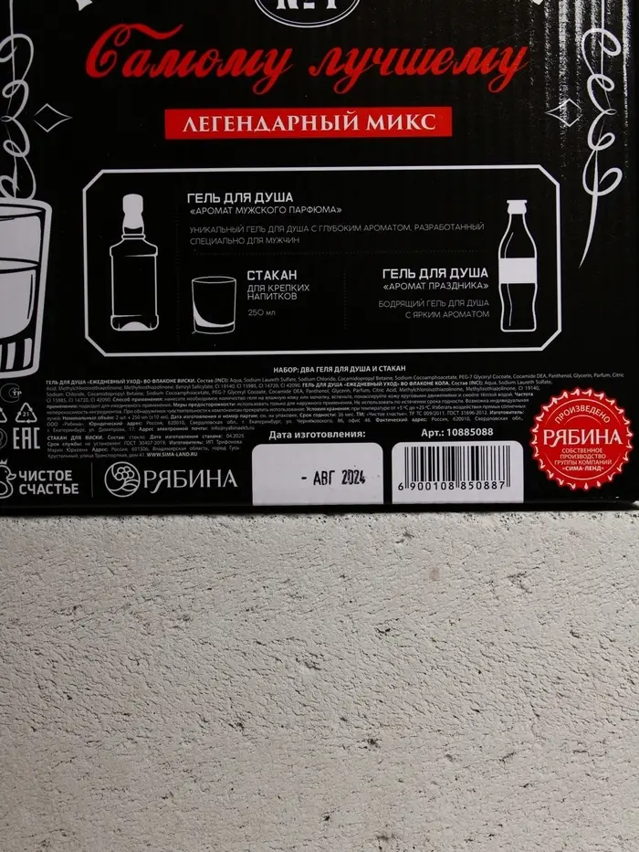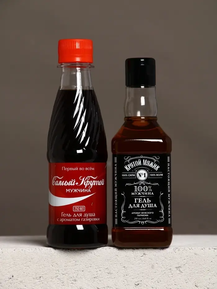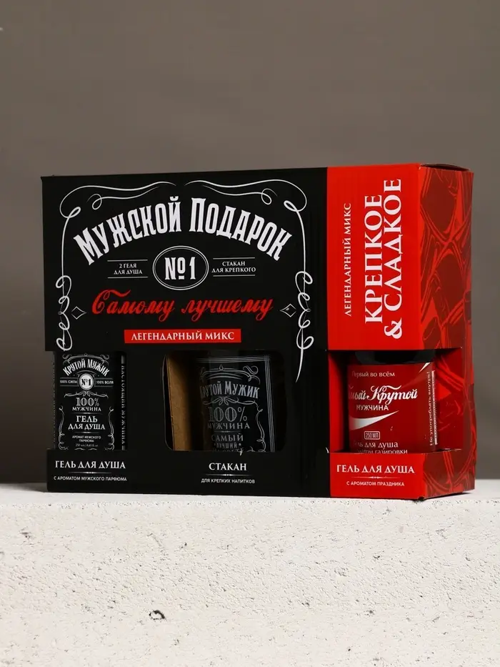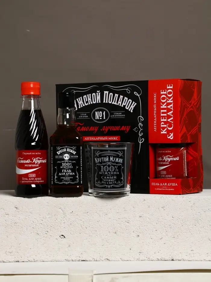 Набор "Мужской подарок", гель для душа виски, гель для душа кола, стакан для виски
