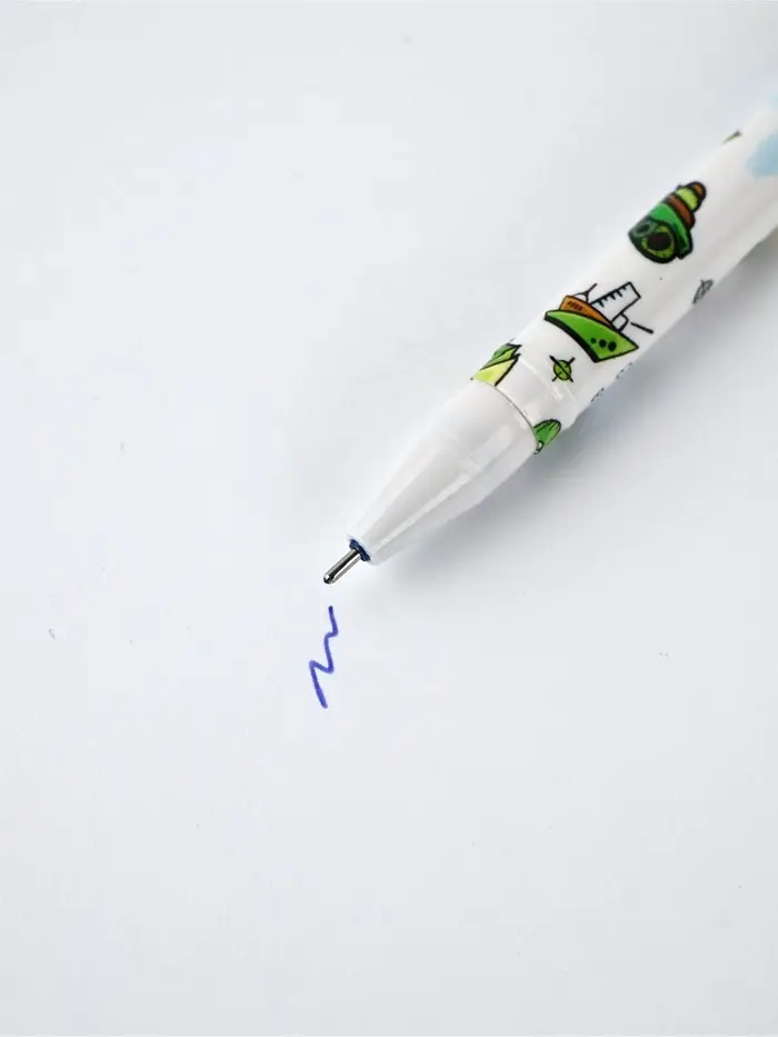 - Яркий дизайн выделяет ручку среди прочих канцелярских принадлежностей.