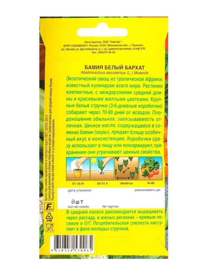 Семена Бамия Белый бархат Семторг, Ц/П СТ,8 шт.