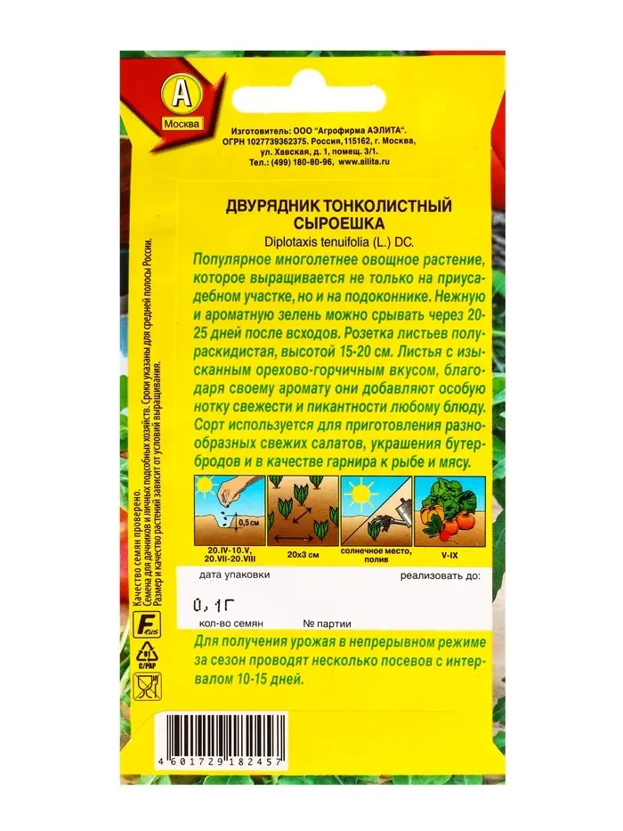 Семена Двурядник тонколистный СыроЕшка, Ц/П,0,1 г