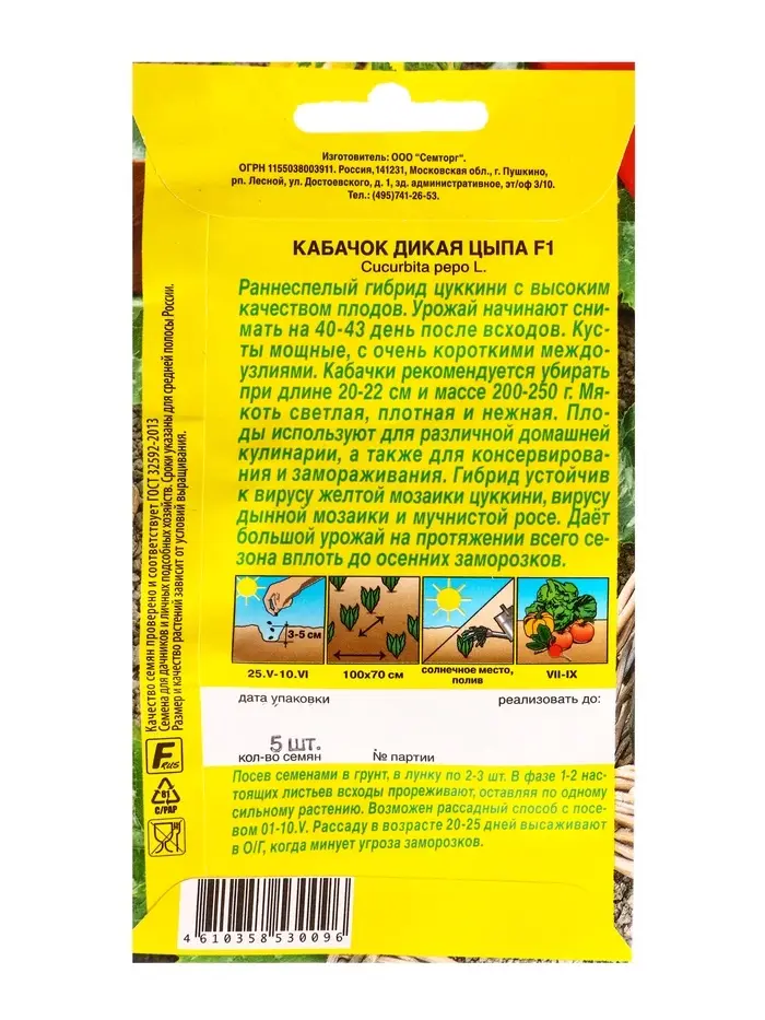 Семена Кабачок цуккини Дикая цыпа F1 Семторг, Ц/П СТ,5 шт.