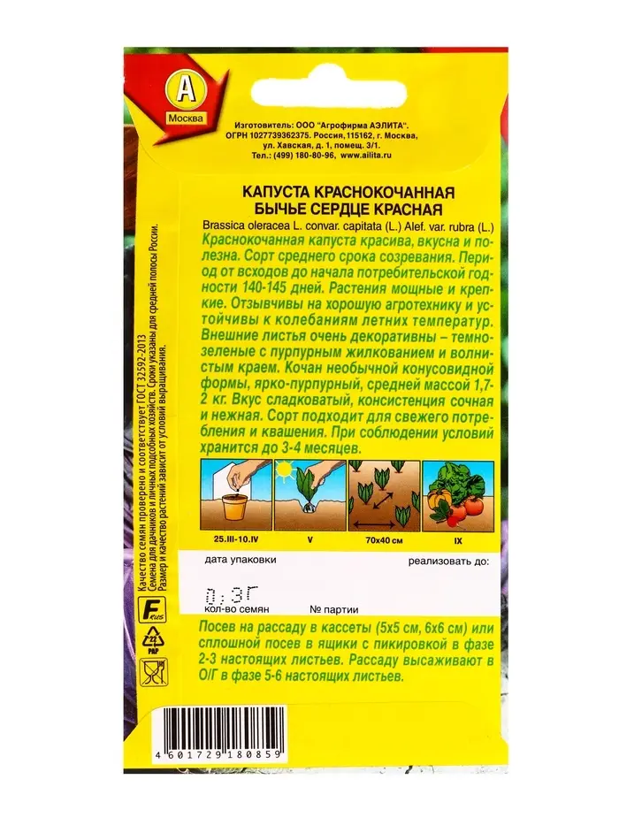 Семена Капуста к/к Бычье сердце красное, Ц/П,0,3 г