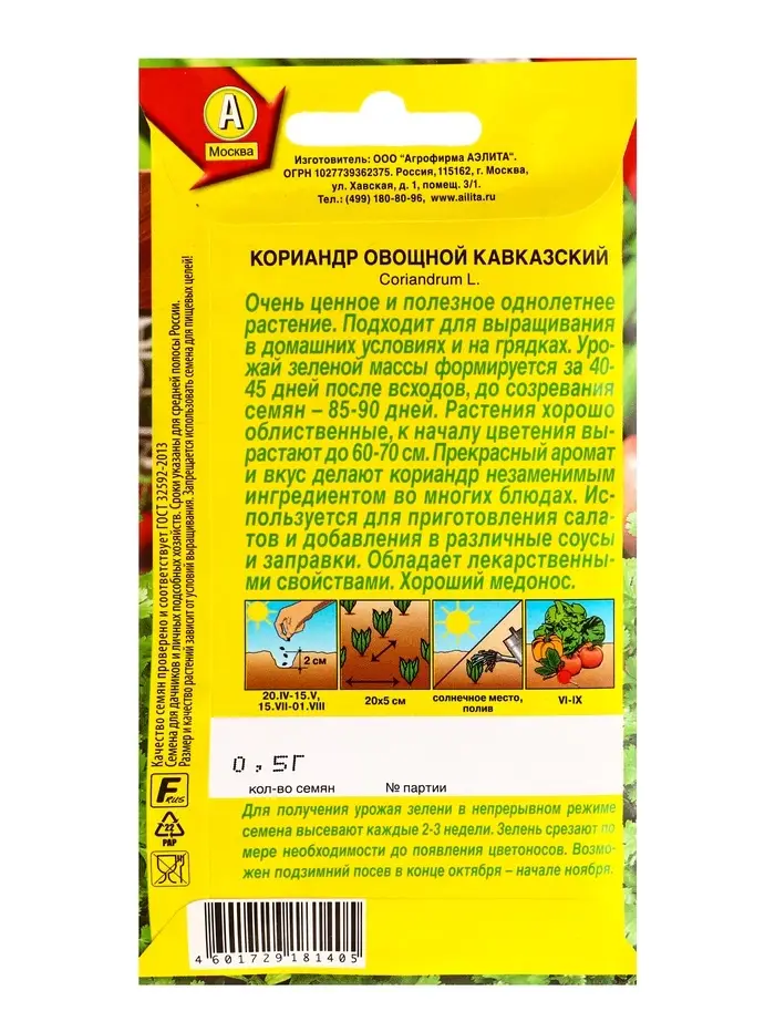 Семена Кориандр овощной Кавказский, Ц/П,0,5 г