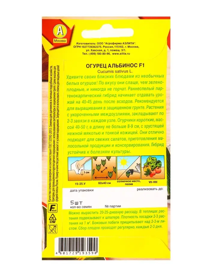 Семена Огурец Альбинос F1 Блюда стран мира, Ц/П,5 шт.