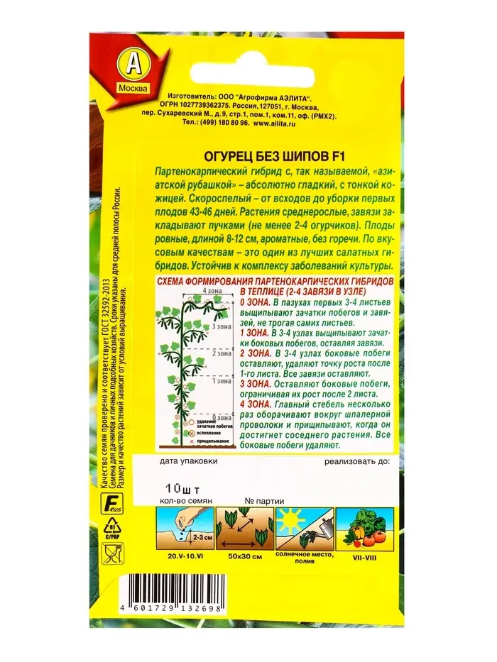 Семена Огурец Без шипов F1 Парт, Ц/П,10 шт.