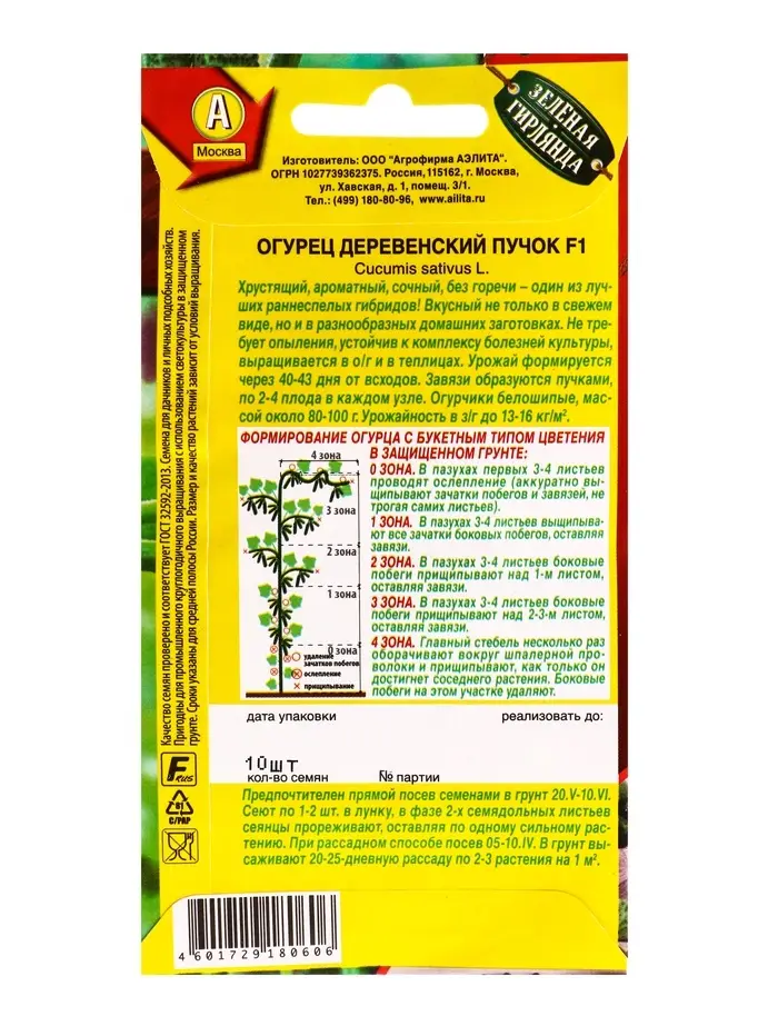 Семена Огурец Деревенский пучок F1 Парт Зеленая гирлянда, Ц/П,10 шт.
