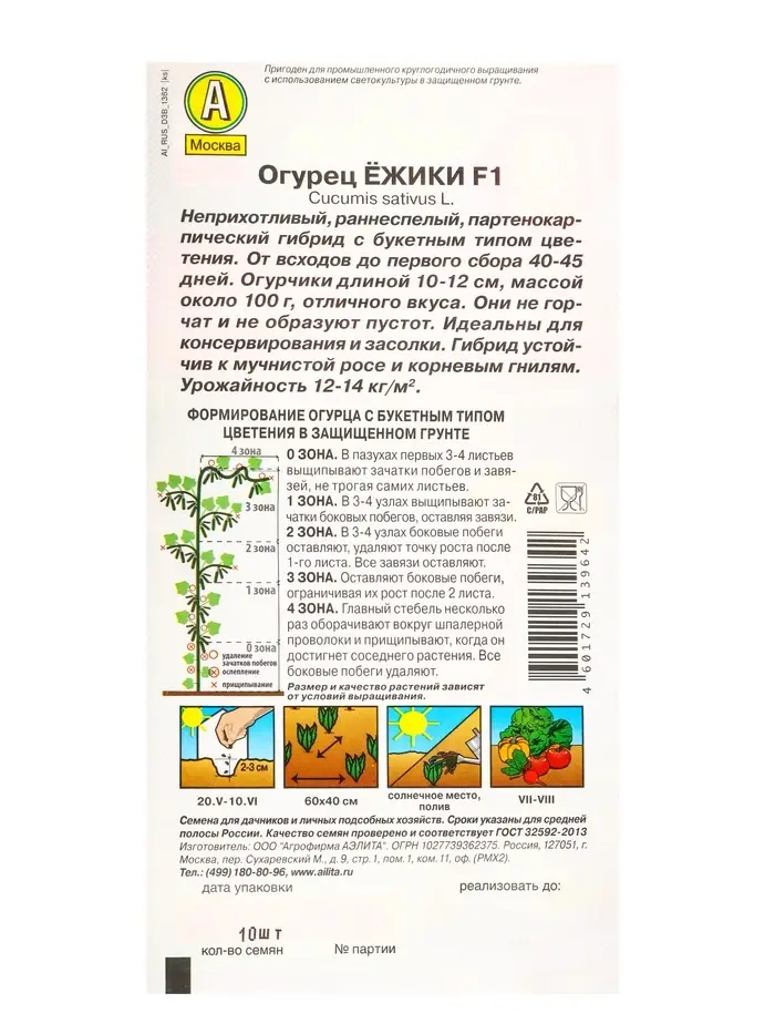 Семена Огурец Ежики F1 Парт, Ц/П,10 шт.