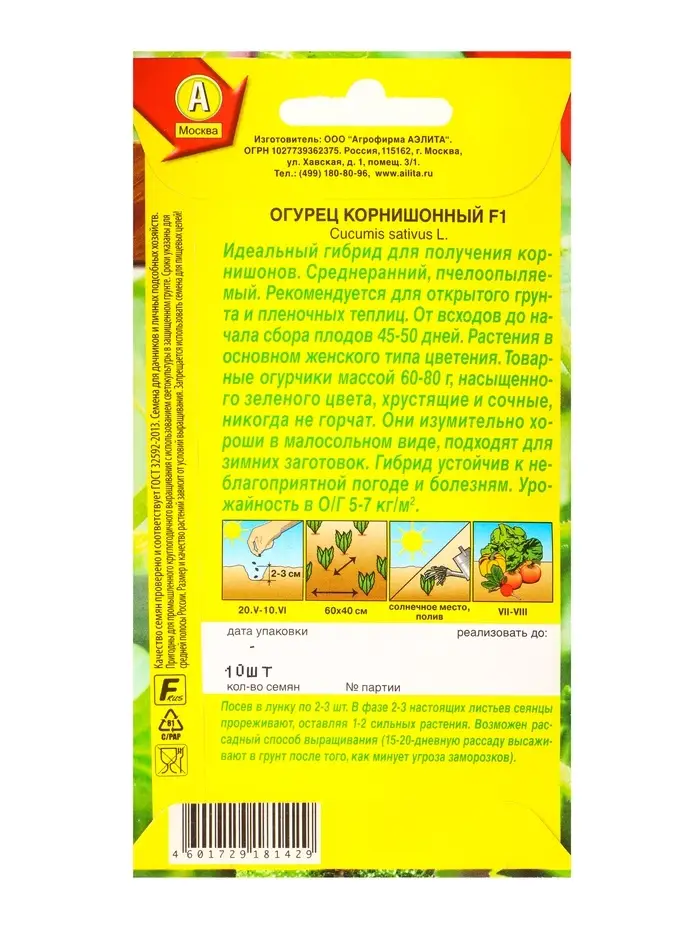 Семена Огурец Корнишонный F1 Пч, Ц/П,10 шт.