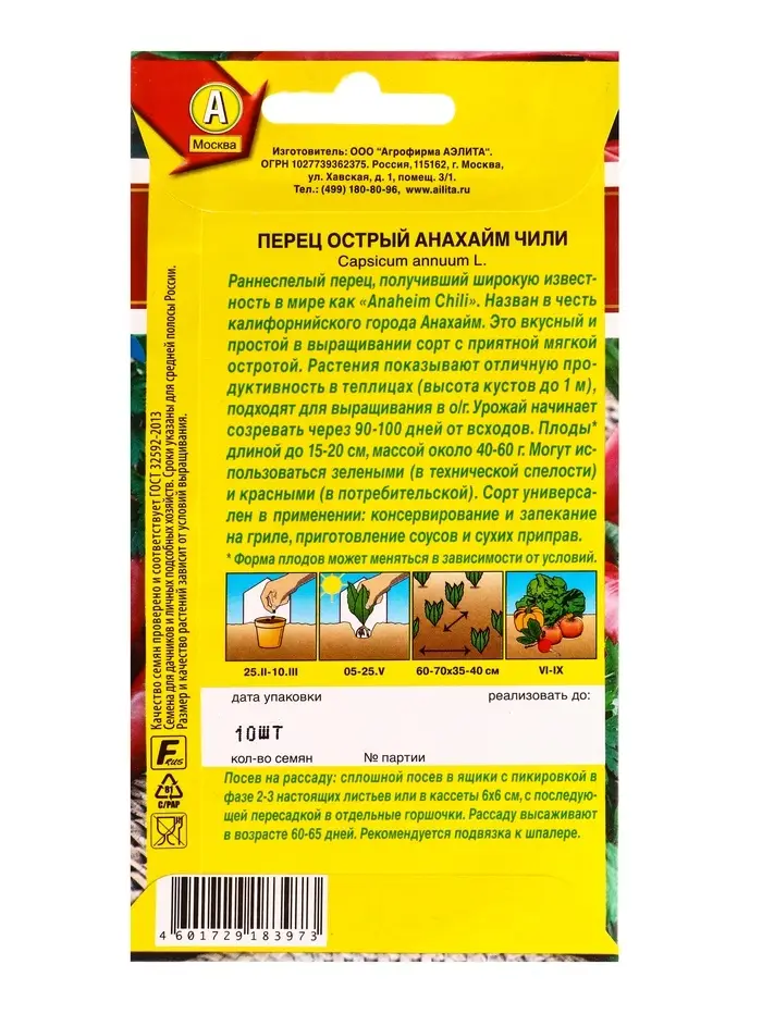 Семена Перец острый Анахайм Чили Мировая коллекция, Ц/П,10 шт.