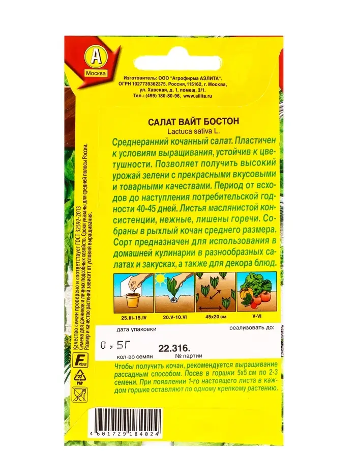 Семена Салат Вайт бостон, Ц/П,0,5 г