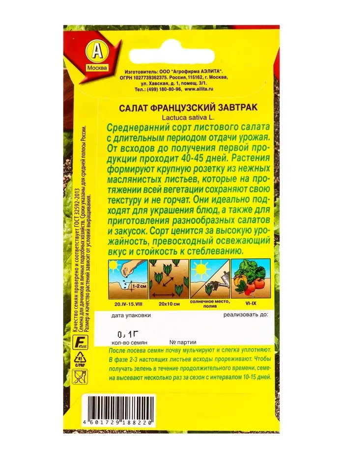 Семена Салат Французский завтрак, Ц/П,0,1 г