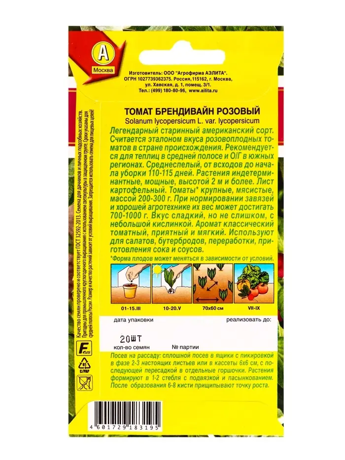 Семена Томат Брендивайн розовый Ср Мировая коллекция, Ц/П,20 шт.