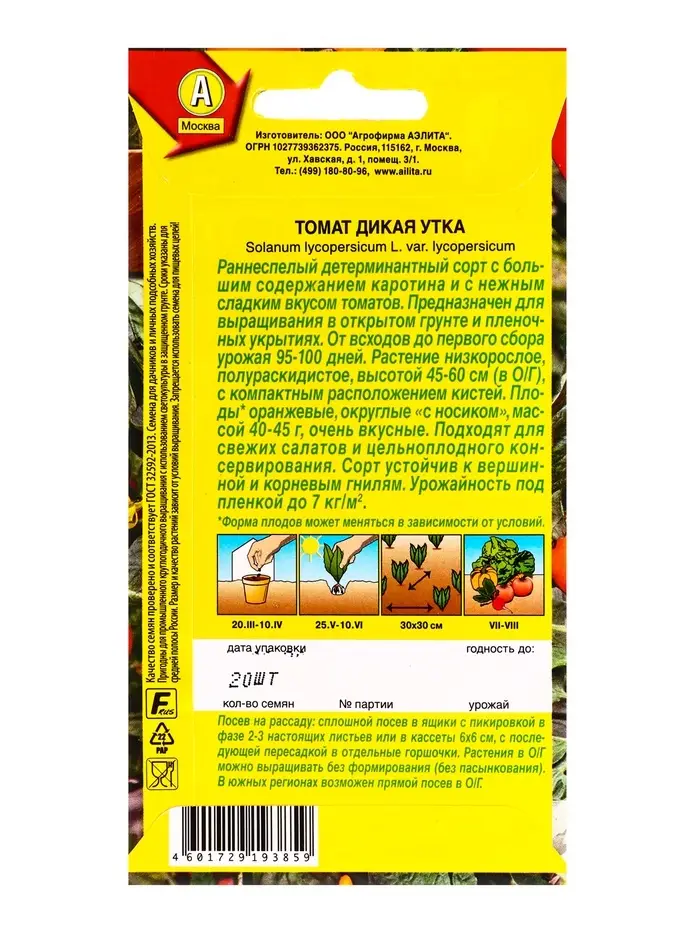 Семена Томат Дикая утка Р, Ц/П,20 шт.