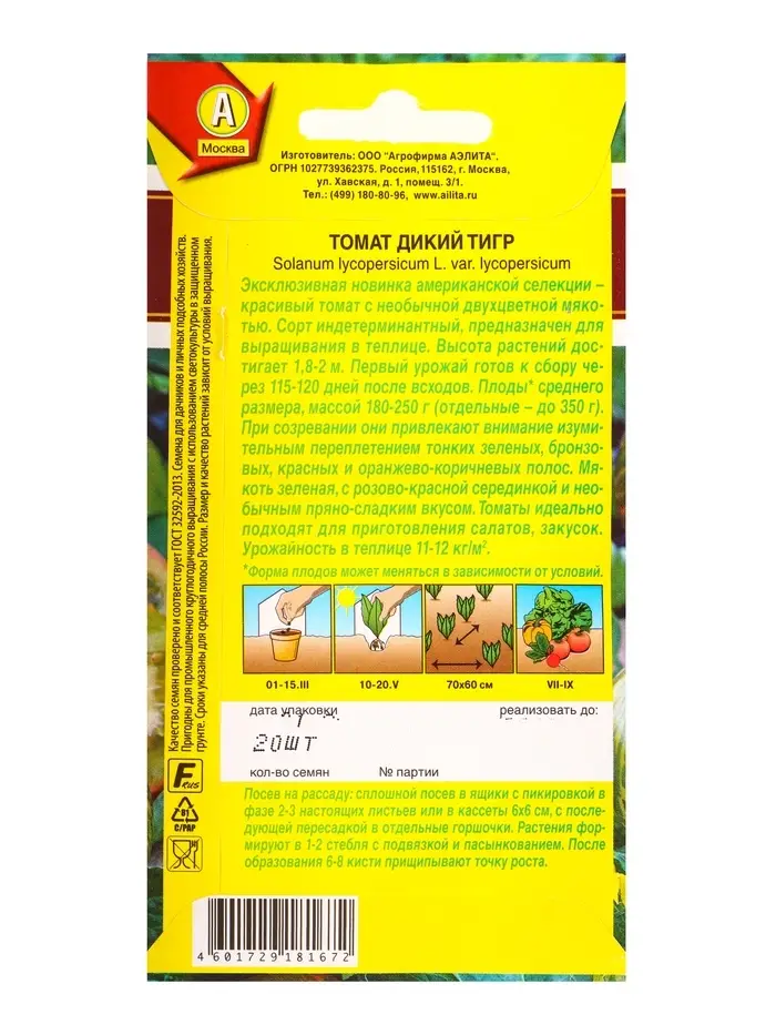 Семена Томат Дикий тигр Ср Мировая коллекция, Ц/П,20 шт.