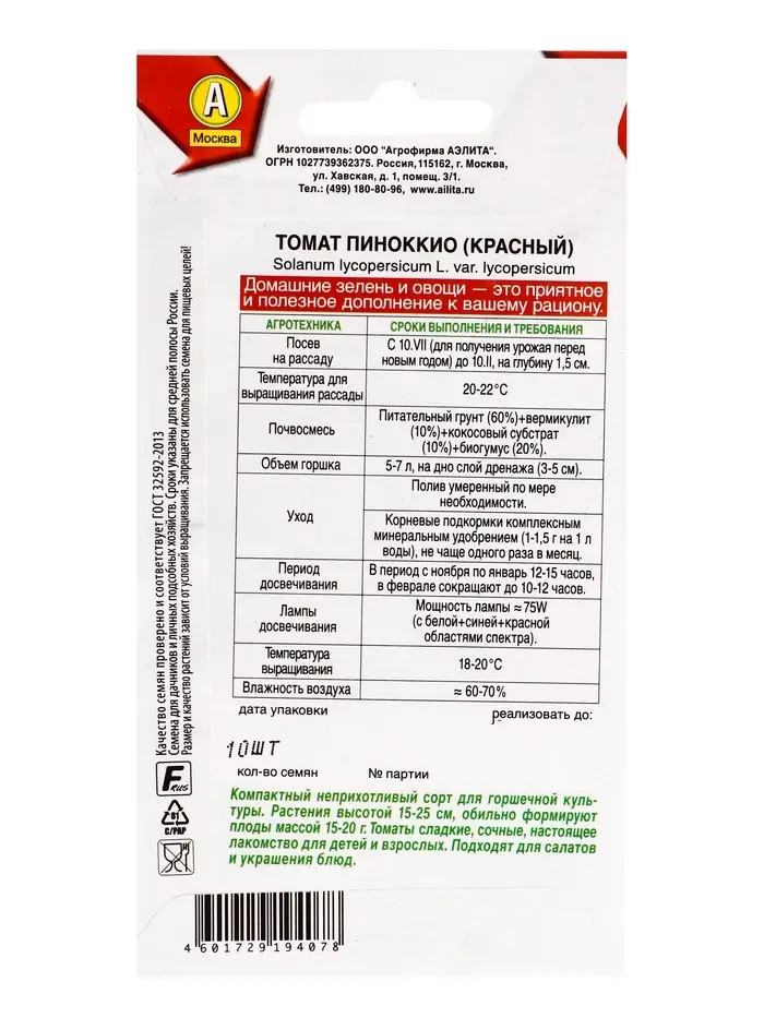 Семена Томат Пиноккио (красный) Р Зимний огород, Ц/П,10 шт.