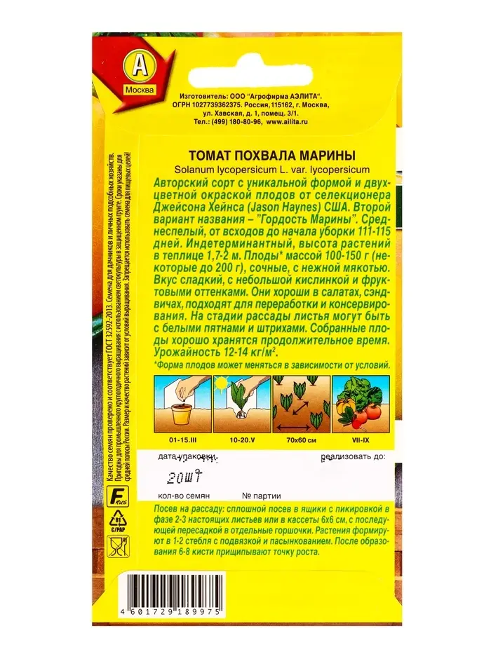 Семена Томат Похвала Марины Ср Нарый любимец, Ц/П,20 шт.