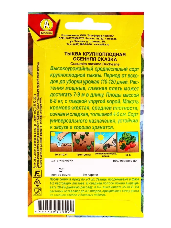 Семена Тыква крупноплая Осенняя сказка, Ц/П,2 г