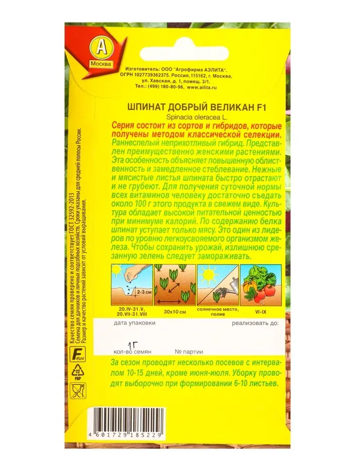Семена Шпинат Добрый великан F1 Профи-Аэлита, Ц/П,1 г